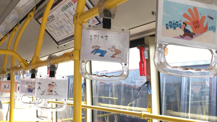 圖為車廂內(nèi)張貼的廉潔格言警句