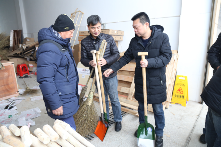 圖為后勤保障部管理人員為線路車輛配備鏟雪工具