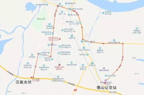 途經(jīng)站點(diǎn):伍家嘴→金海鋼構(gòu)→三合垸防汛抗旱指揮部→千噸級(jí)碼頭→常德表面材料產(chǎn)業(yè)園→力元新村→烏潭崗村→楓樹崗村安置小區(qū)→湖南華電西門→雙崗社區(qū)21組→常德水域救援大隊(duì)(緝毒刑偵大隊(duì))→茶葉崗→宜達(dá)物流→紅星美凱龍→昊天集團(tuán)→惠生國際→樟木橋派出所→五一村→澄冬一汽大眾4S店→桃花山→五一村安置小區(qū)→德山生活灣→德山工商銀行→二醫(yī)院→恒安集團(tuán)→德山經(jīng)開區(qū)管委會(huì)→常德中小企業(yè)創(chuàng)業(yè)基地→廣積米業(yè)→崇德中學(xué)→茅灣大橋(原線返回)