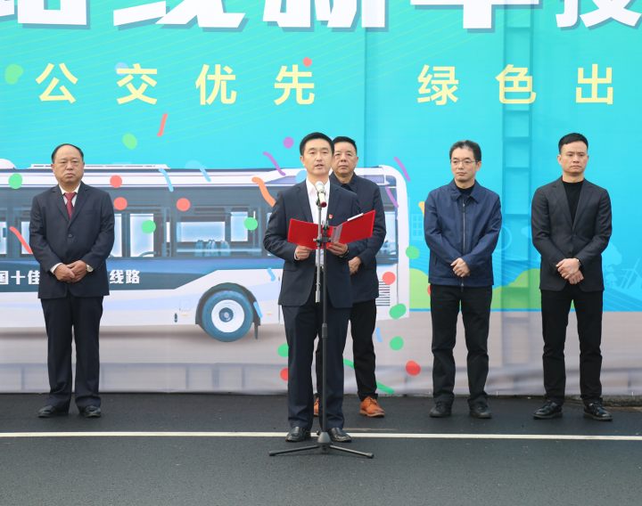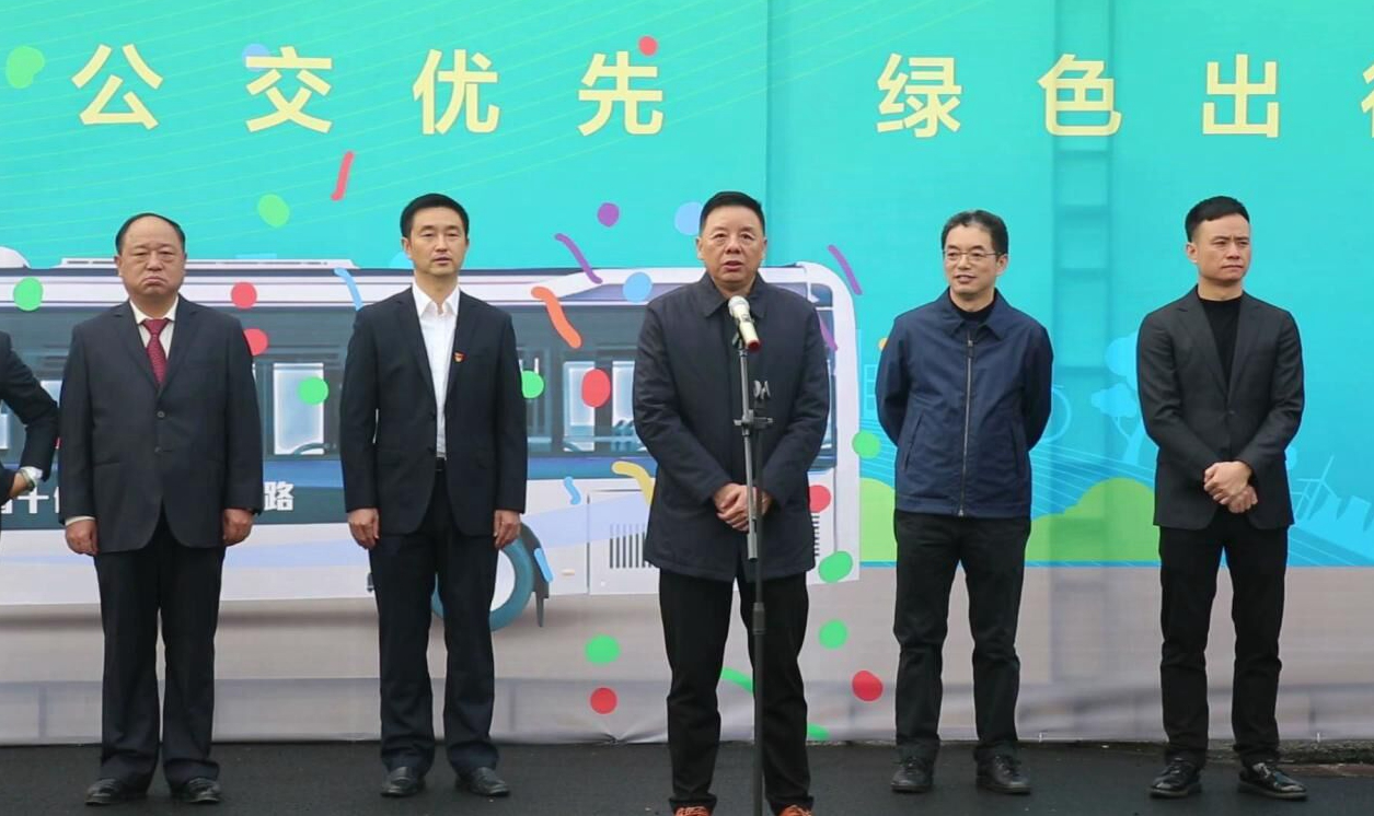 圖為市交通運(yùn)輸局副局長(zhǎng)王國(guó)軍宣布新車(chē)上線