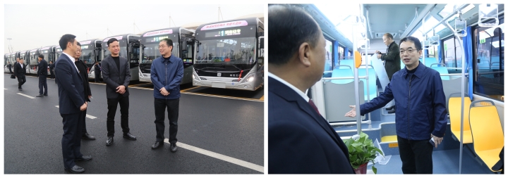 圖為集團(tuán)公司領(lǐng)導(dǎo)視察新車(chē)